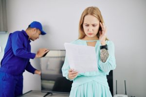 Frowning unhappy young woman reading document with price of tv set installation Posted on 29/12/2020 by Dienlanhtienphat